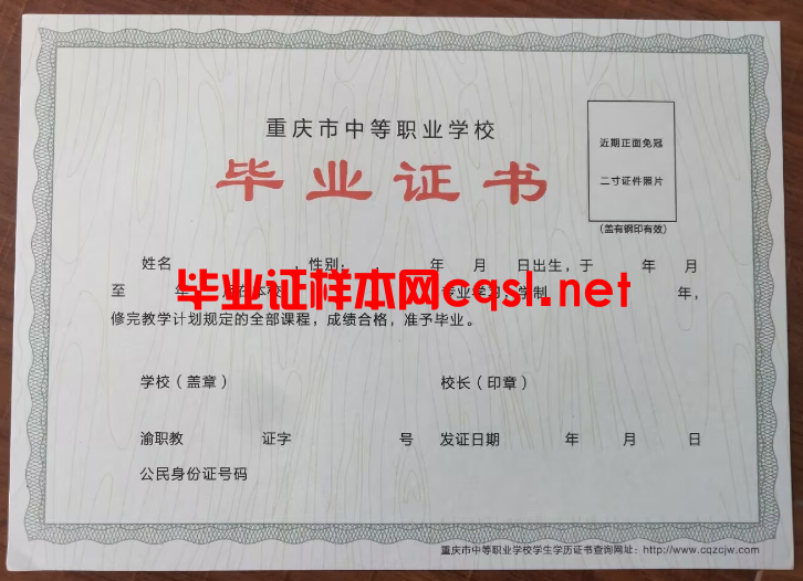 重庆定州市卫生中等专业学校中专毕业证样本图片